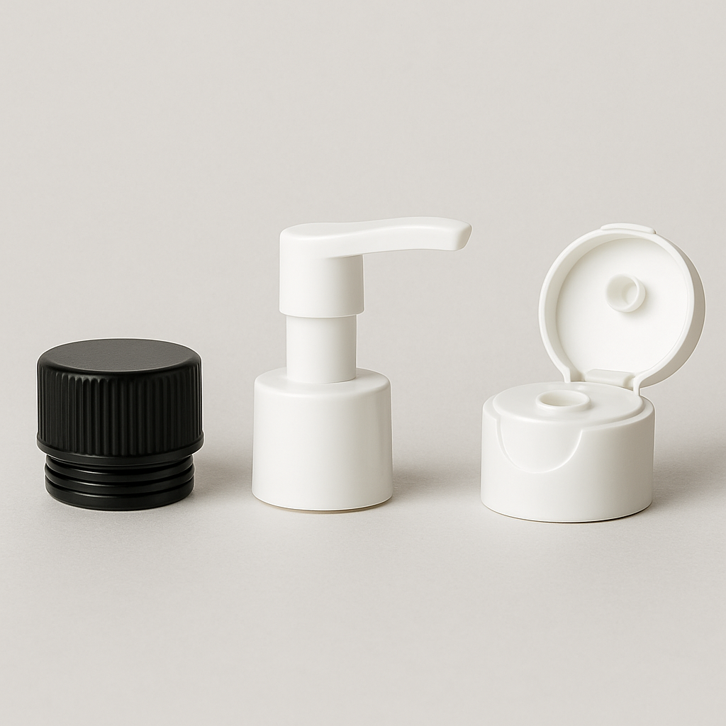 The most popular types of closure are screw caps with liner, pump dispensers with gel or lotions, and wide-opening flip-top caps. Before mass production, closures must be tested with the actual product must be carried out under real-world conditions